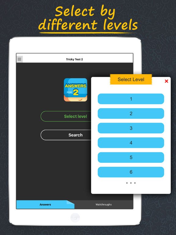 Tricky Test 2 Answers to Questions for Tricky Test 2 - iPhone iPod. Test your IQ in this brain-logic game app which is available for both iOS and Android devices. Complete and detailed Walk though included.